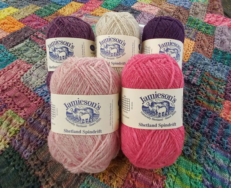 This kit is for a 5 colour version using Jamieson's of Shetland 4ply Spindrift yarn.