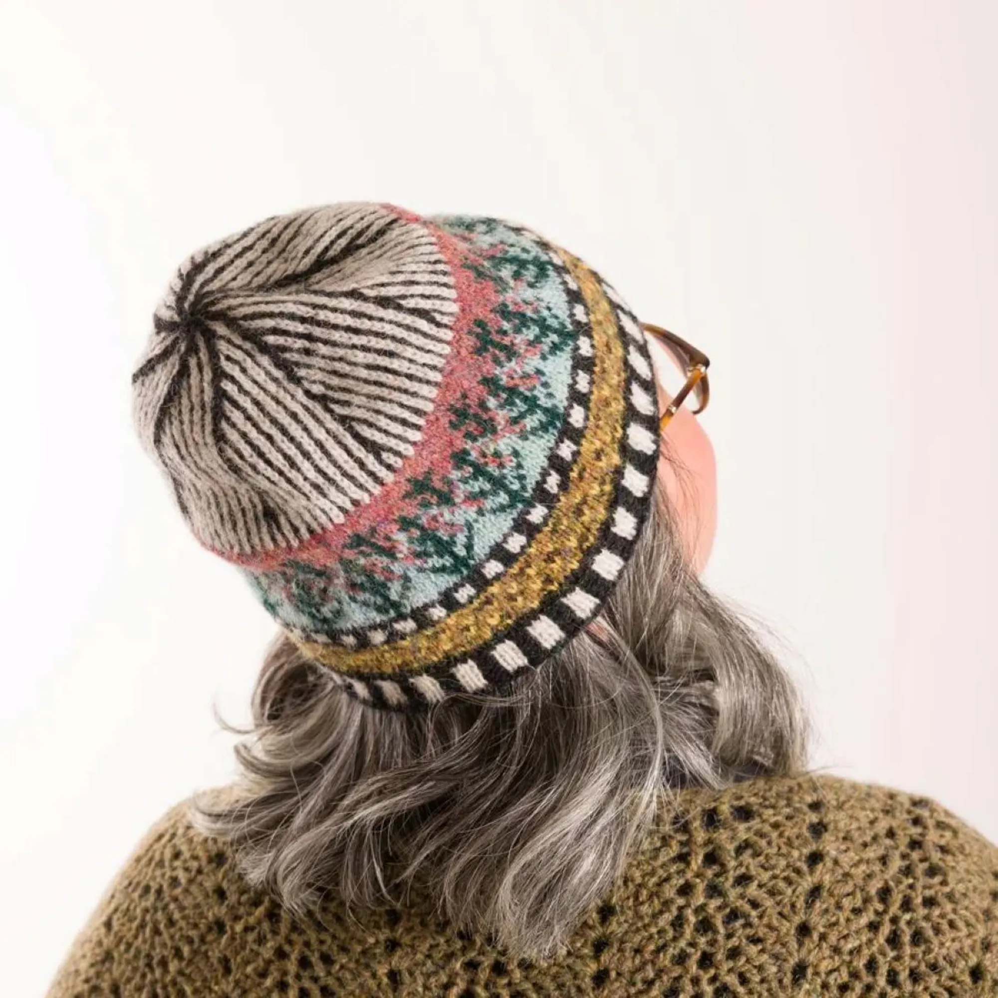 Portmoak Moss beanie hat by Louise Mossom using Jamiesons of Shetland Spindrift