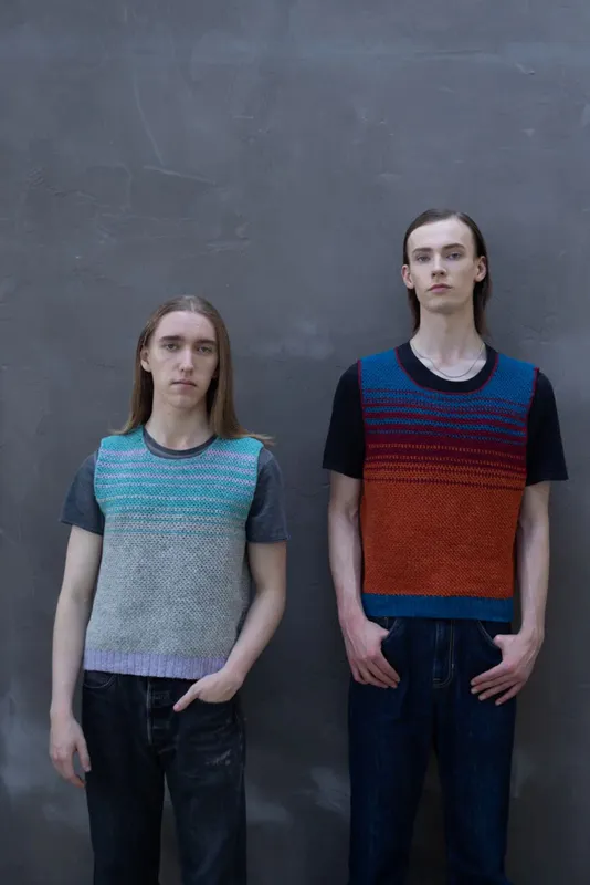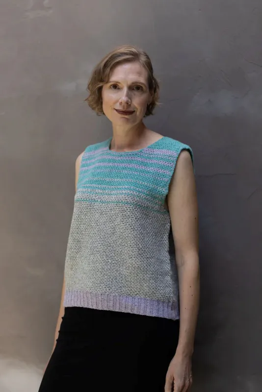 SAMIRA HILL, EILDON HILLS DESIGNS Whin Top: a versatile sleeveless garment that can be a poncho or an oversized tank top. Designed with Hawkshaw Sheep Aran weight wool.