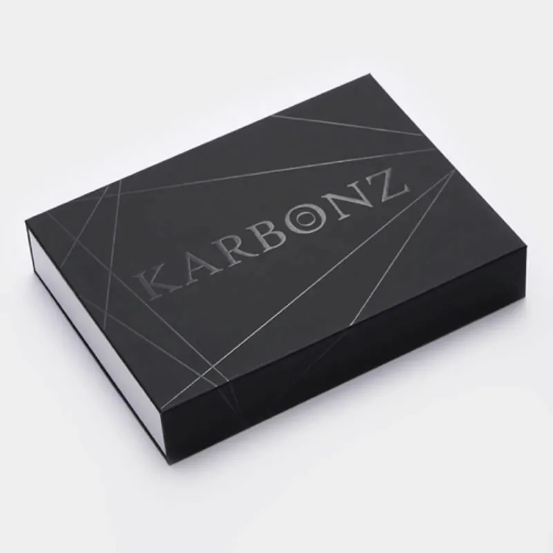 Set of 8 sizes of Karbonz Interchangeable Circular Needles (3.5, 4.0, 4.5, 5.0, 5.5, 6.0, 7.0 & 8.0 mm), 4 cable lengths and accessories packed in a black and grey box with a soft fabric grey bag to store the related knitting accessories.