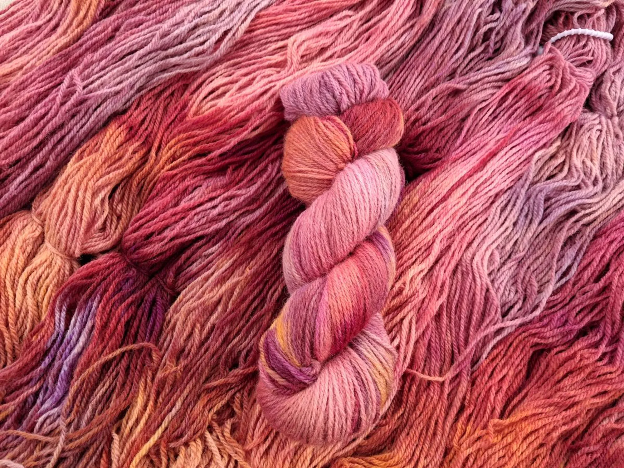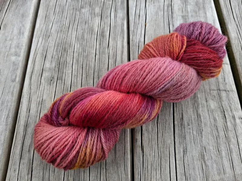 This product has been kettle dyed to create a variegated colourway. This technique can result in colour variances between and within batches which adds to their uniqueness. A small scale approach to the dyeing process results in only three skeins per batch which is why we call the individual skeins fraternal triplets. For this reason, as well as possible variances due to the device or screen you are viewing the images on, consider the images provided as indicative only.