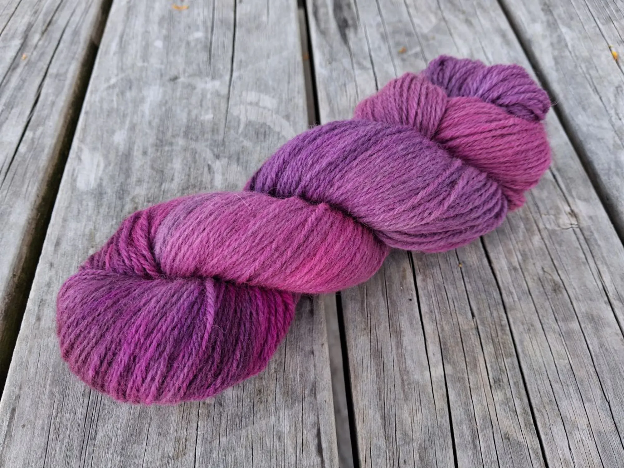 This product has been kettle dyed to create a variegated colourway. This technique can result in colour variances between and within batches which adds to their uniqueness. A small scale approach to the dyeing process results in only three skeins per batch which is why we call the individual skeins fraternal triplets. For this reason, as well as possible variances due to the device or screen you are viewing the images on, consider the images provided as indicative only.