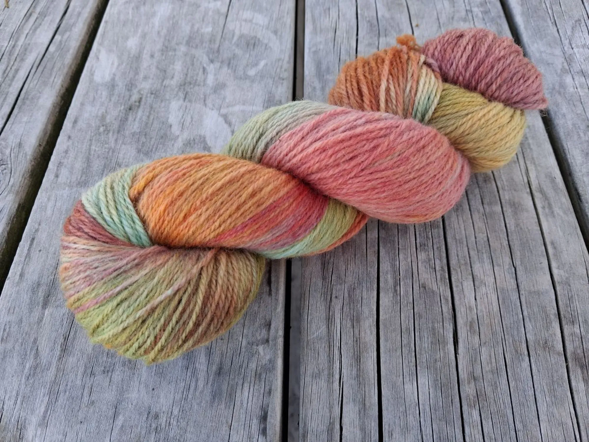 This product has been kettle dyed to create a variegated colourway. This technique can result in colour variances between and within batches which adds to their uniqueness. A small scale approach to the dyeing process results in only three skeins per batch which is why we call the individual skeins fraternal triplets. For this reason, as well as possible variances due to the device or screen you are viewing the images on, consider the images provided as indicative only.