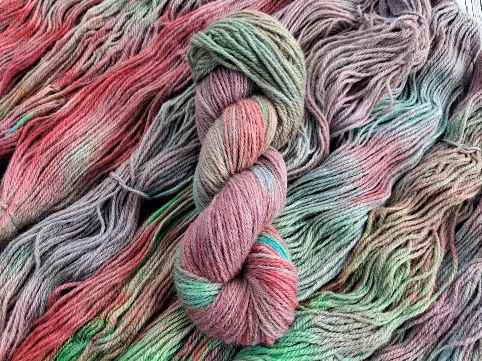 This product has been kettle dyed to create a variegated colourway. This technique can result in colour variances between and within batches which adds to their uniqueness. A small scale approach to the dyeing process results in only three skeins per batch which is why we call the individual skeins fraternal triplets. For this reason, as well as possible variances due to the device or screen you are viewing the images on, consider the images provided as indicative only.