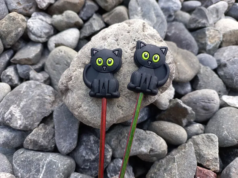 Point protectors are a fun addition to your crafting tool kit. Made from silicone you slip them onto the points of your knitting needles when you're not working on your project to protect the tips and to prevent the stitches from falling off your needles. These cute black cat point protectors come as a pair and each measure 3cm high by 2cm wide by 0.8cm thick. Suitable for needle tips up to 7mm.