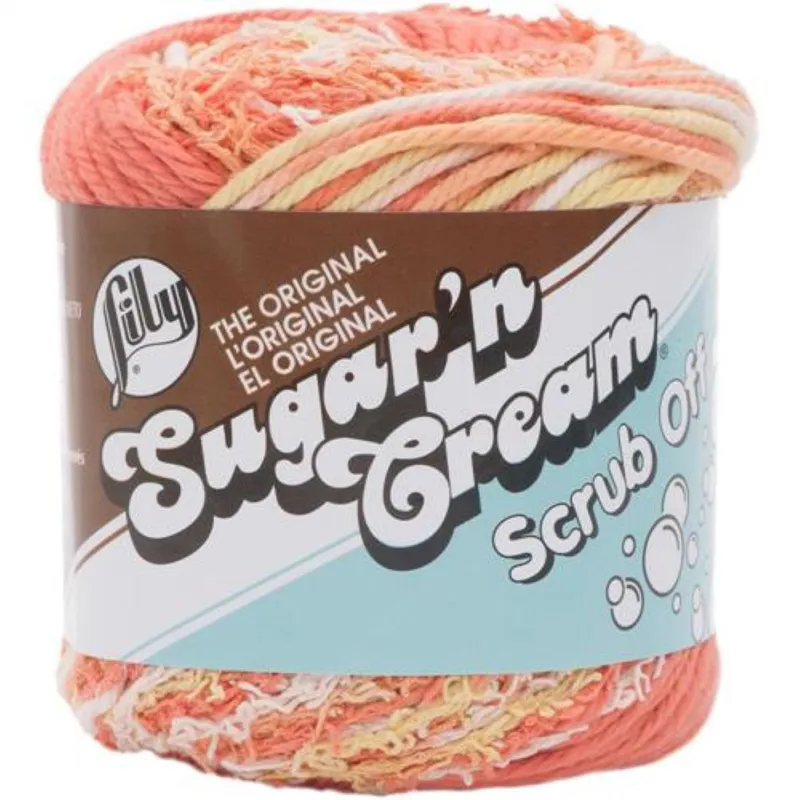 Create unique, multi-textured projects that look beautiful and work to tackle kitchen cleaning or provide spa-like exfoliation. The New Lily Sugar n Cream Scrub Off is a 100% cotton worsted weight yarn that features alternating sections of Lilys classic cotton and a scouring section for tougher messes. This super absorbent yarn provides the best of both worlds in kitchen cleaning. It is a versatile yarn for creating multi-textured cleaning cloths, dishcloths, and even spa-like scrubbies. Conveniently machine washable and dryable for easy care.
