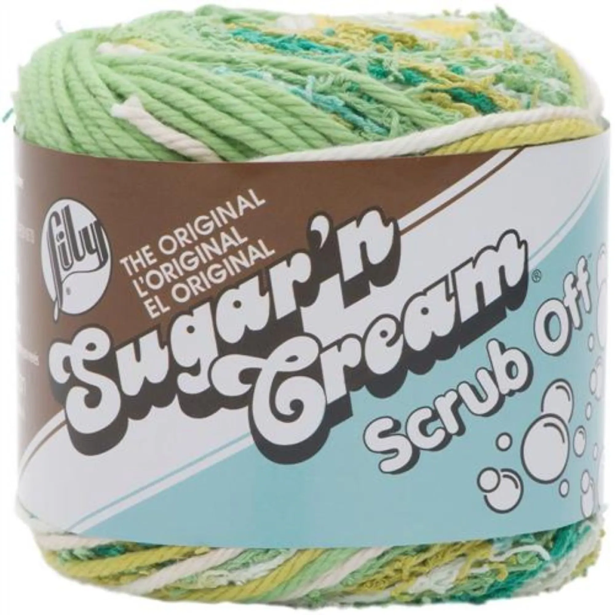 Create unique, multi-textured projects that look beautiful and work to tackle kitchen cleaning or provide spa-like exfoliation. The New Lily Sugar n Cream Scrub Off is a 100% cotton worsted weight yarn that features alternating sections of Lilys classic cotton and a scouring section for tougher messes. This super absorbent yarn provides the best of both worlds in kitchen cleaning. It is a versatile yarn for creating multi-textured cleaning cloths, dishcloths, and even spa-like scrubbies. Conveniently machine washable and dryable for easy care.